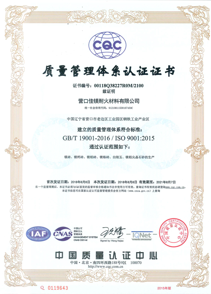 質(zhì)量管理體系認證證書